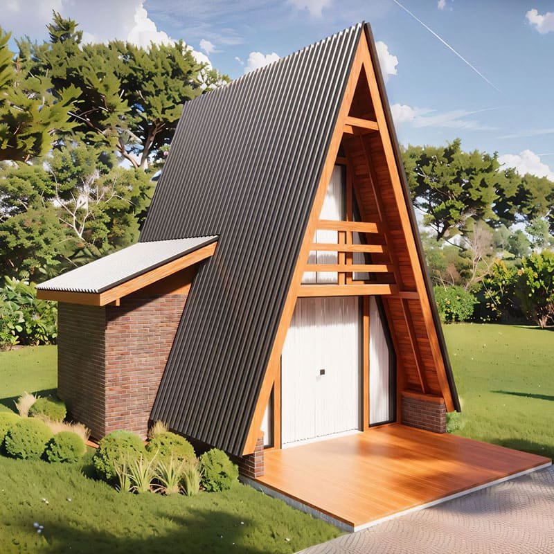 Este modelo de Chalé Suíço AFRAME 48m² foi projetado para abrigar até duas pessoas com o conforto e segurança que você e seu hospede precisa.