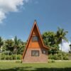 Este modelo de Chalé Suiço AFRAME 61m² foi projetado para abrigar até quatro pessoas com o conforto e segurança que sua família e seus hospedes precisam.