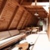 Um chalé A-FRAME com acabamento premium em madeira, que além de ajudar no conforto térmoacústico, deixa o ambiente aconchegante e romântico.