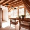 O piso térreo do A-FRAME DE 98M² possui uma sala de TV, quarto, banheiro social, sala de jantar